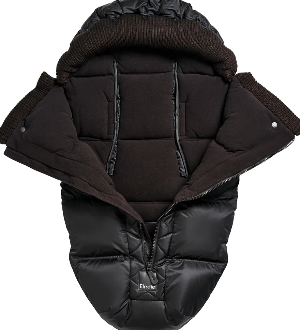 Elodie Details køreposen åbnes fortil med en lynlås med indvendig vindstolpe. Forstykket kan lynes en smule ned og fæstnes med trykknapper, for en lidt større åbning, eller lynes helt af ved varmere forhold. Posens yderside er både vind- og vandafvisende så barnet holdes lun selv i dårligt vejr.