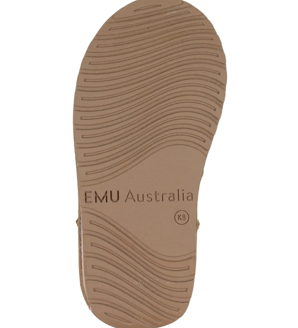 EMU Australia bamsestøvlerne har et højt skaft, som går godt op over anklerne. De har et lækkert uldfor, og ydersålerne er brune og lavet af et letvægtigt materiale.