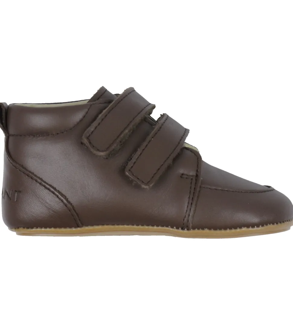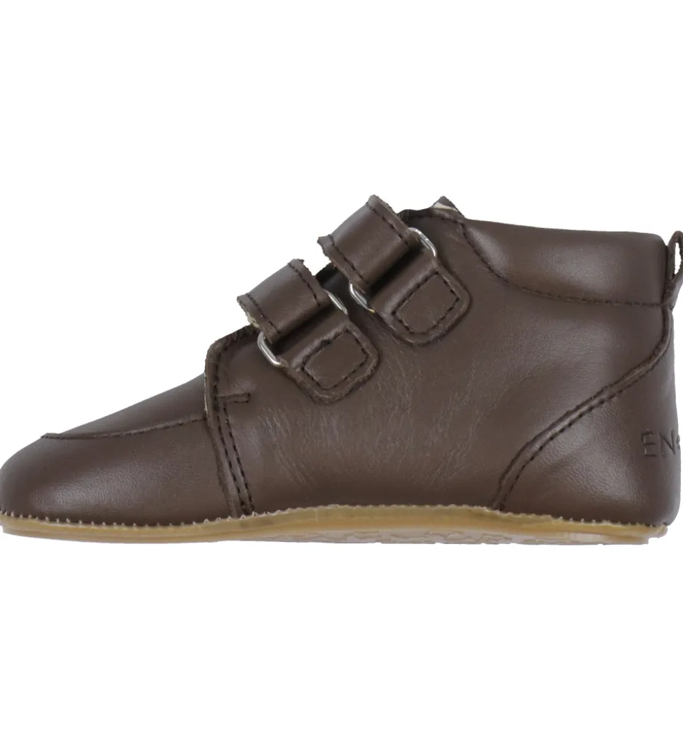 En Fant begynderskoene lukkes ved velcro, og på indersiden er der blødt skind. Begynderskoene har udtagelige indersåler, og ydersålerne er ekstra bløde og fleksible og lavet af brunt gummi, som giver et godt fodfæste.