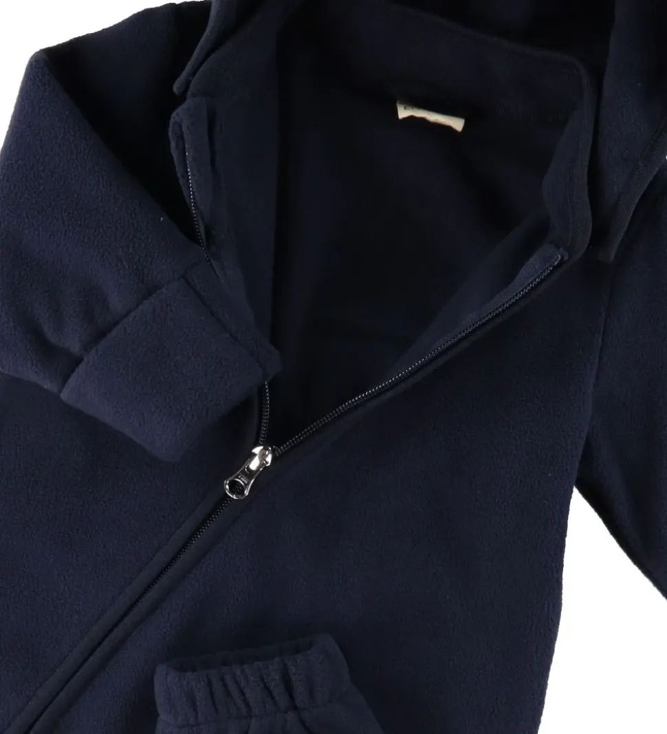 En Fant fleecedragten har lange ærmer med mulighed for ombuk, lange ben og en aftagelig hætte. Fleecedragten åbnes med en lynlås ved halsen og løber ned til højre ben. Fleecedragten er lavet i en lækker fleecekvalitet.