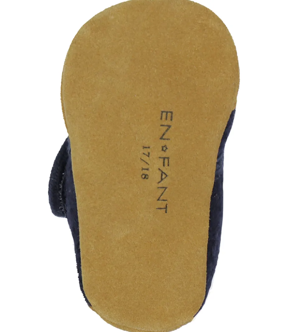 En Fant hjemmeskoene lukkes med en bred velcrorem over foden, så de er hurtige at tage af og på. Hjemmeskoene har en ydersål af ruskind, som sikrer et godt fodfæste.