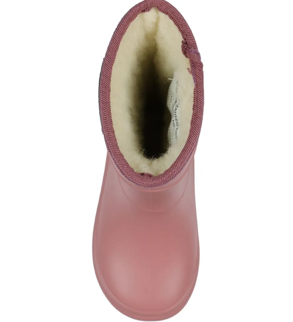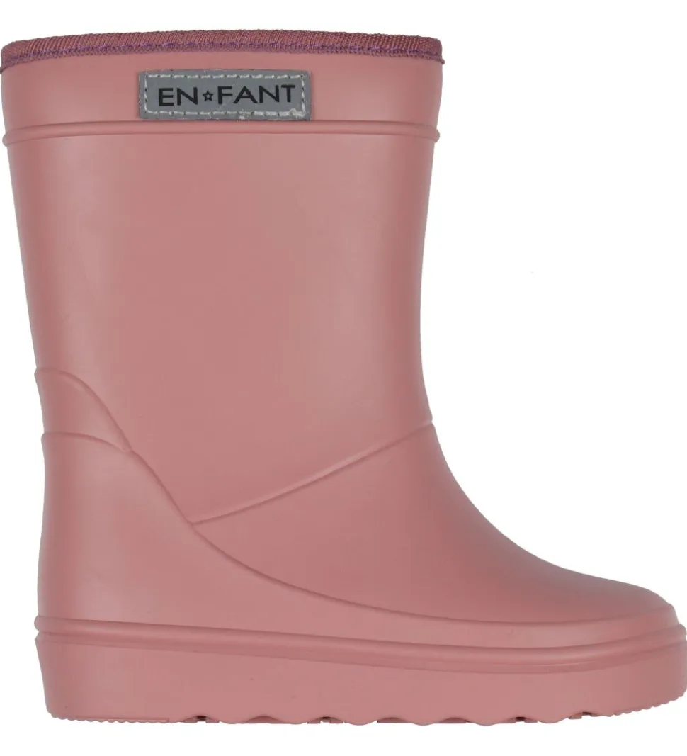 Flotte En Fant termostøvler i ensfarvet gammelrosa med en rosa kant i toppen, og på ydersiden er der et refleks-mærke med En Fant logoet.