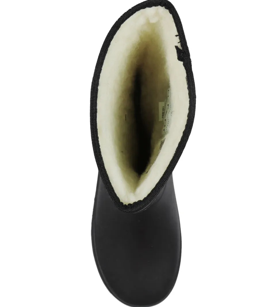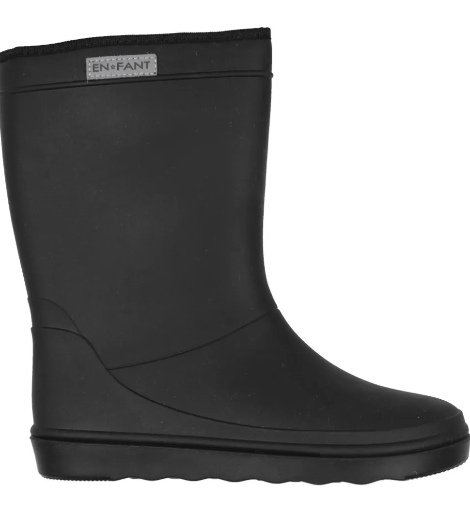 Lækre En Fant termostøvler i ensfarvet sort. Skaftet har en smal tekstilkant og en praktisk refleks med logo på ydersiden.