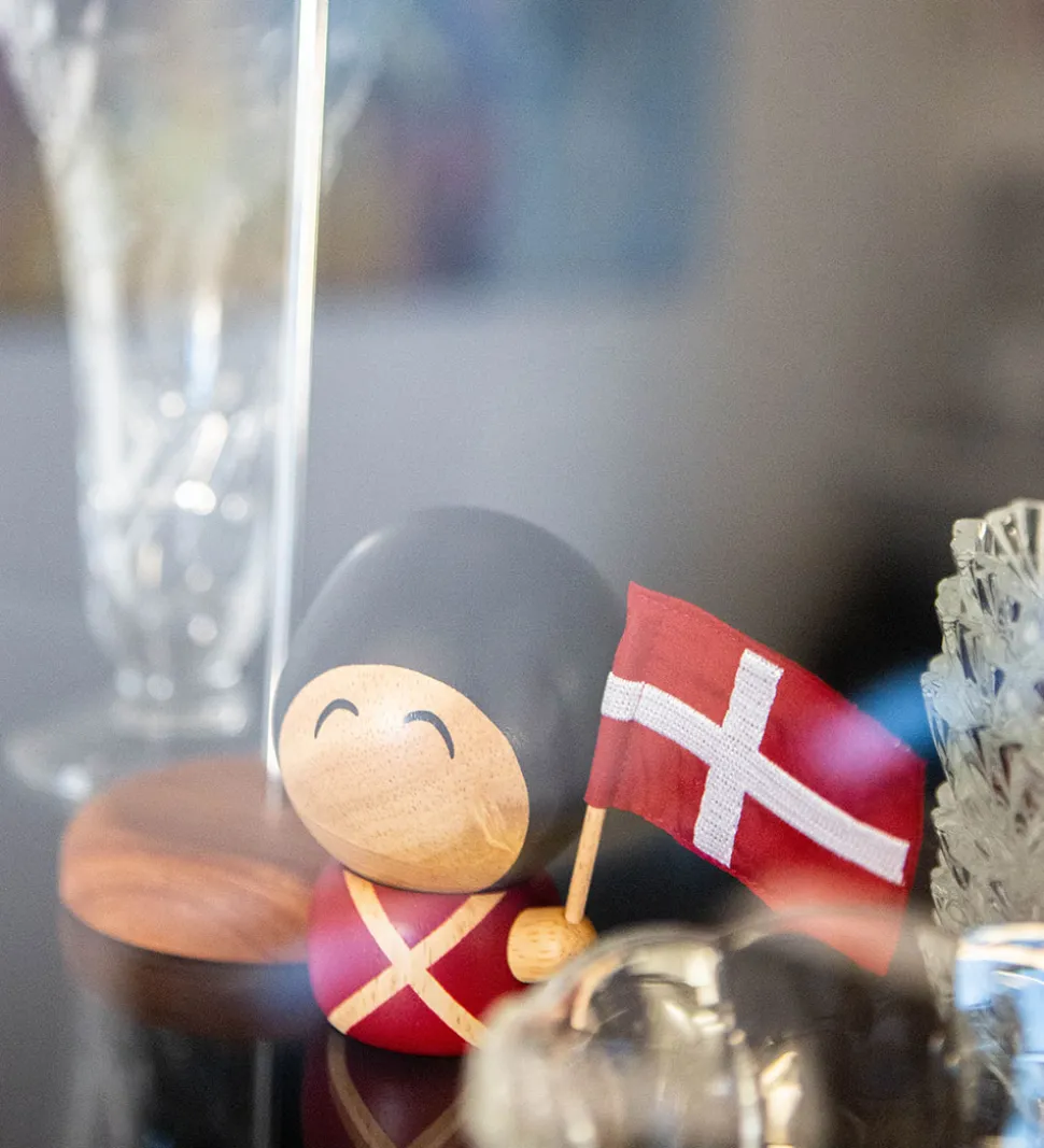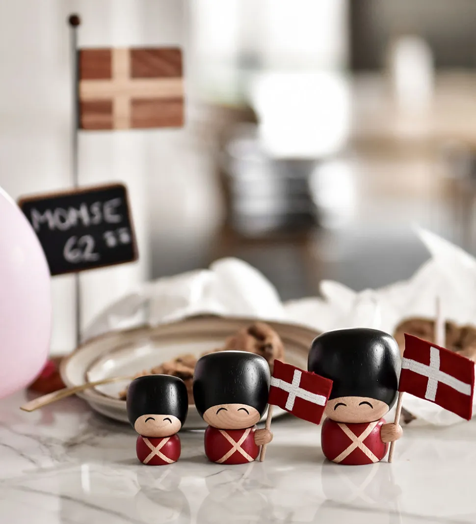Fin FableWood dekoration i træ i naturfarvet, sort og rød. Figuren er formet som den stor garder, Henrik.