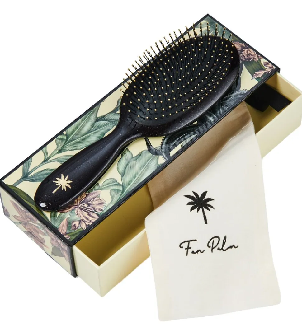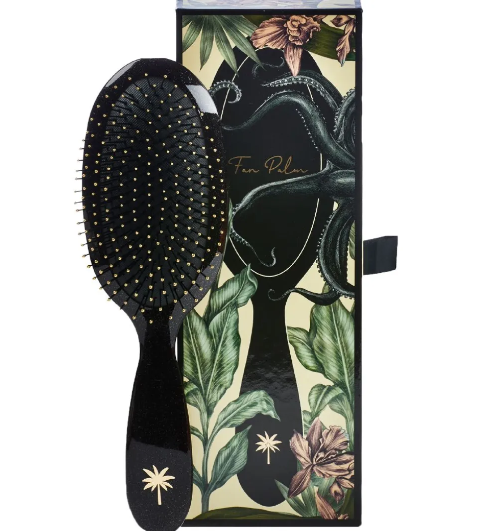 Lækker Fan Palm hårbørste i sort med glimmer.