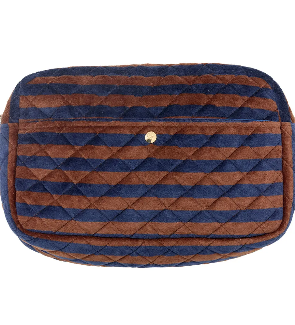 Smart Fan Palm toilettaske i brun med navyblå striber. Toilettasken er med en lækker frotté struktur samt har den et fin quiltet mønster.