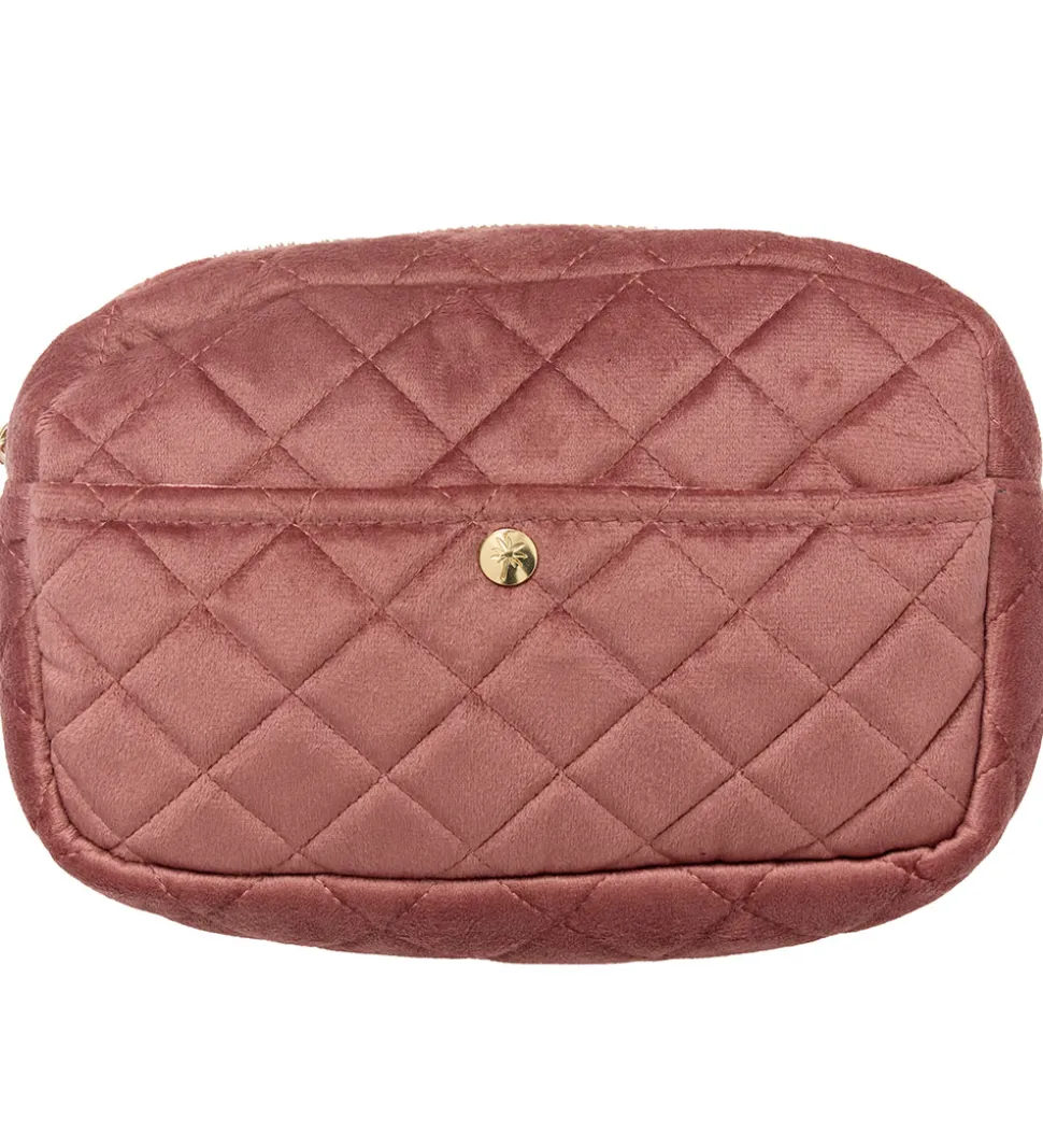 Sød Fan Palm toilettaske i rosa velour med et flot quiltet mønster.