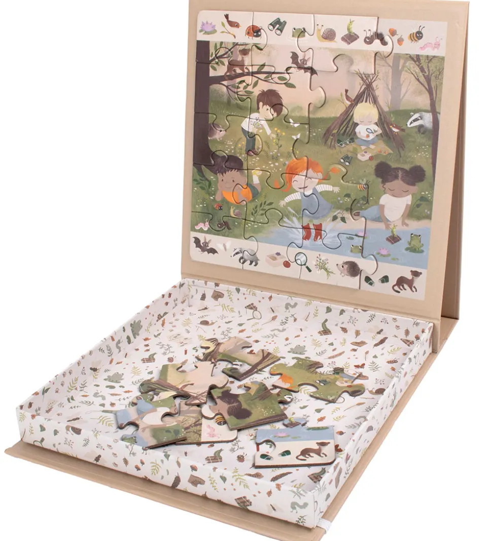 Sjovt Filibabba magnetisk puslespil med motiv af børn på eventyr i skoven.