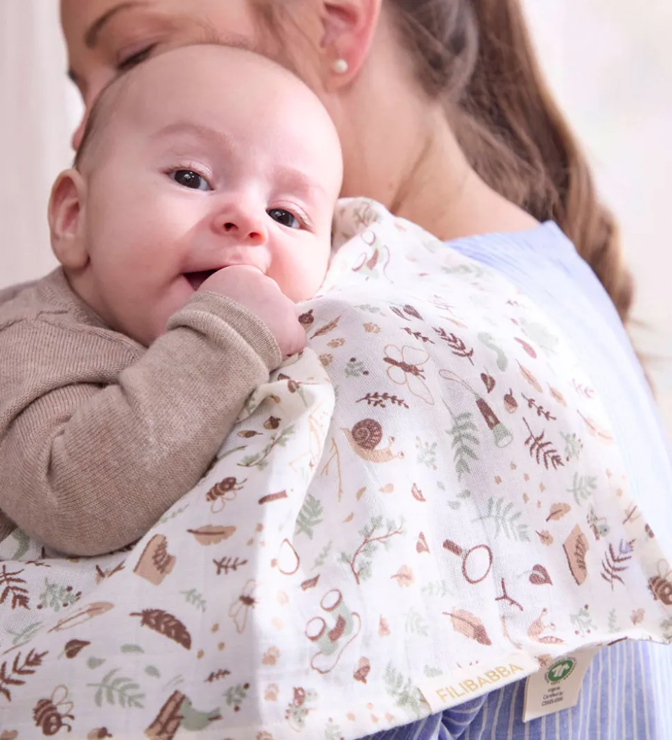 Filibabba stofbleen har en kvadratisk form og i musselin-bomuld. Stofbleen er super praktisk og kan bruges til mange forskellige ting som f.eks. et skifteunderlag, en nusseklud eller til at tørre næsen med.