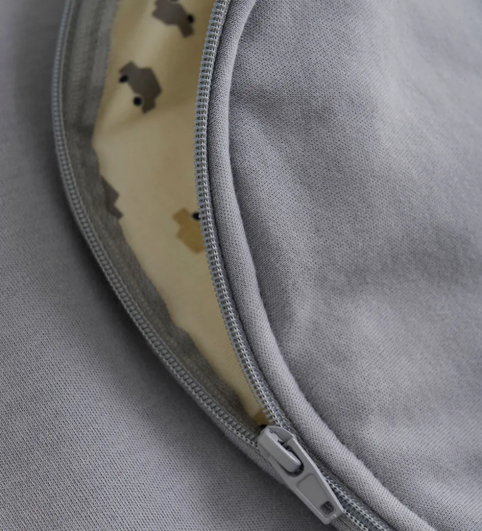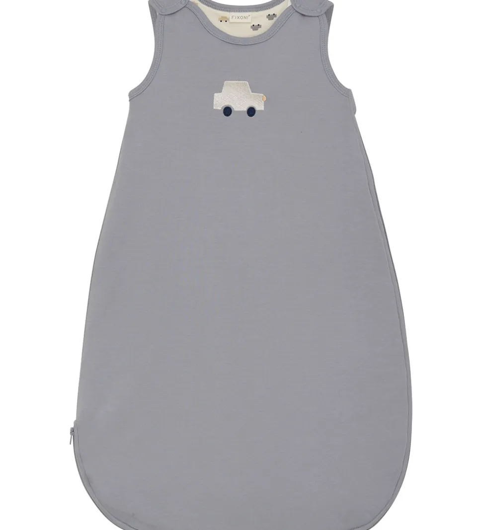 Fixoni soveposen har brede stropper over skuldrene, som hver åbnes med to trykknapper, og soveposen åbnes med en lynlås ned ad venstre side og langs bunden. Lynlåsen har to skydere og en praktisk hagebeskytter. Soveposen er lavet af blødt bomuldsjersey, og den har en let vattering, så barnet holdes varmt.