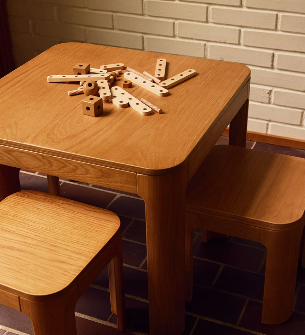 Flot Flexa bord fra Nova-serien i egetræsfarvet krydsfiner.