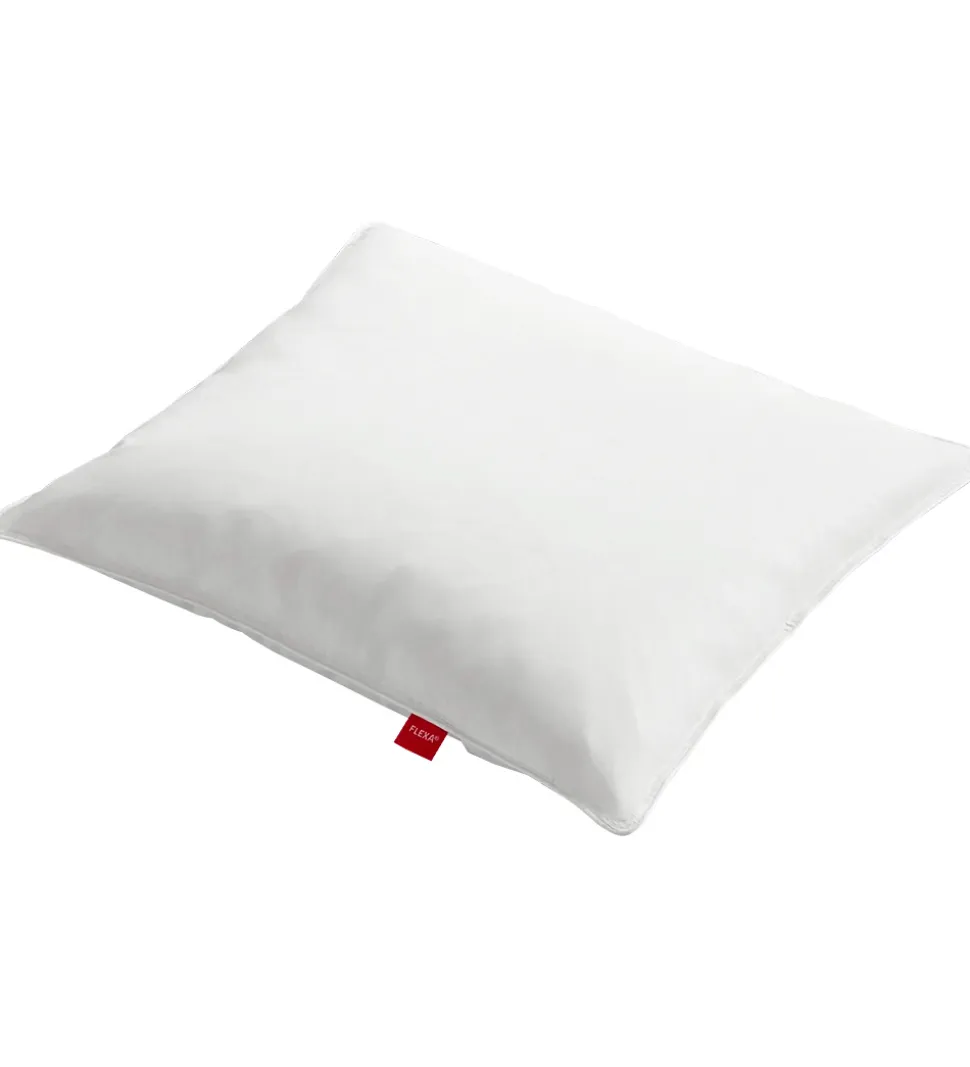 Flexa hovedpuden er blød og dejlig med en yderside af bomuld og et fyld af andedun og -fjer i tre kamre. Hovedpuden kan vaskes i vaskemaskinen ved 60 grader eller mindre.