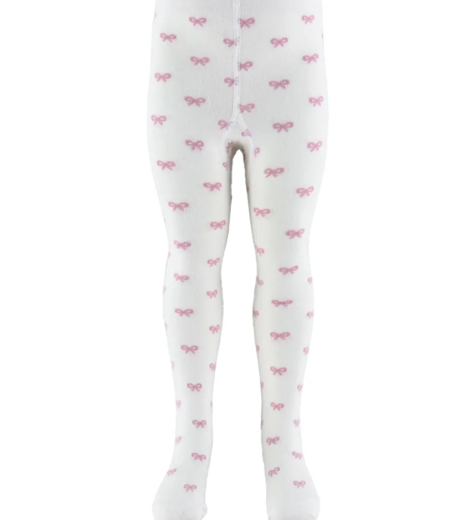 Fine Fuzzies strømpebukser i hvid med et print med små rosa sløjfer.