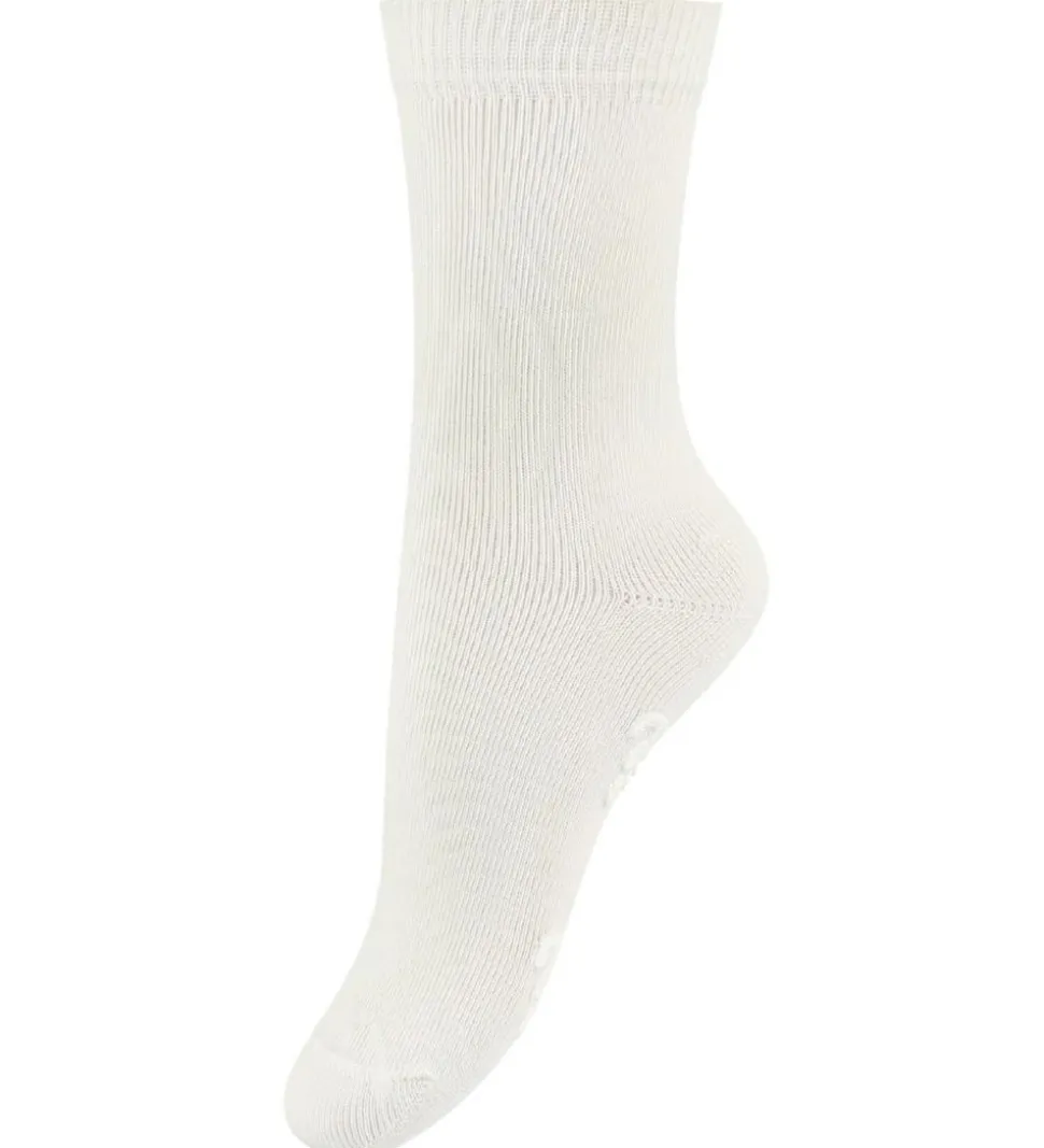 Lækre Fuzzies strømper i hvid med skridsikre detaljer under foden.