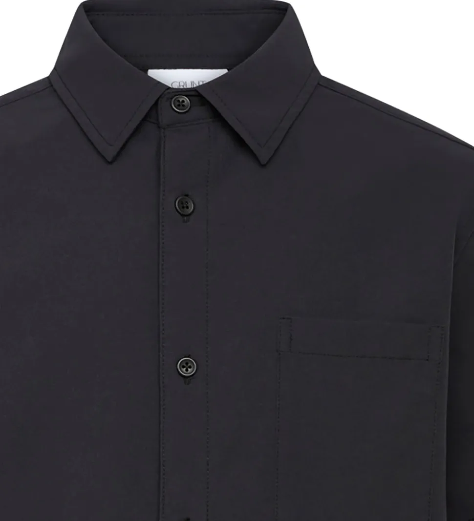 Smart Grunt skjorte i ensfarvet sort med en let crepéstruktur.