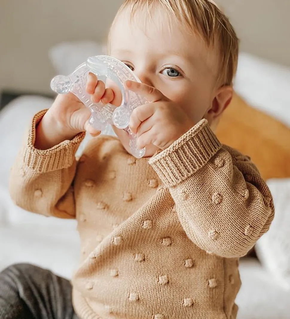 Haakaa bideringen vil med sin fine form fange barnets opmærksomhed. Bideringen er ned forskellige strukturer, som stimullerer gummerne. Bideringen mindsker irritation, når der begynder at komme tænder.