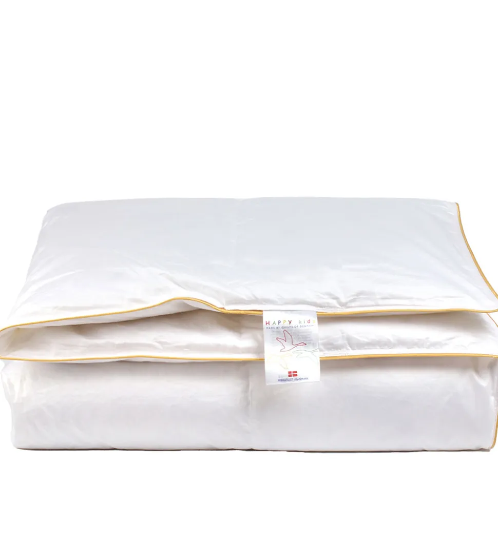 Skøn Happy Kids dyne i klassisk, ensfarvet hvid og er i en juniorstørrelse. Dynen er allergivenlig med et fyld af gåsedun og et yderstof af bomuldssatin som gør den dejlig let og lækker blød.