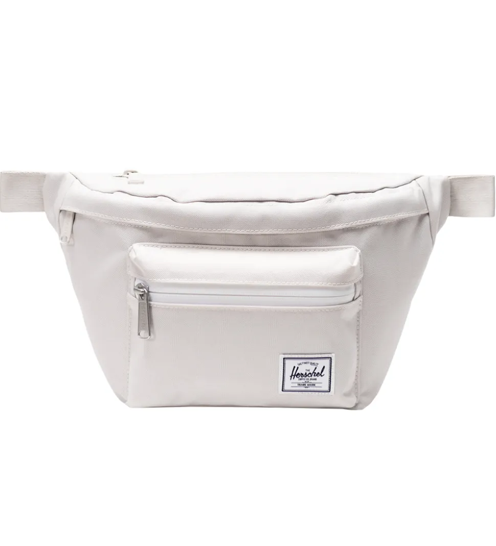 Fin Herschel bæltetaske i ensfarvet off-white med et logo på fronten. Bæltetasken har en flot facon, og består af tre rum, som alle åbnes med lynlås. I det største rum er der en lomme i net indvendigt. Bæltetasken har en justerbar rem, som kan åbnes med et klik-spænde. Den kan bæres omkring livet eller som en cross-body taske over skulderen.
