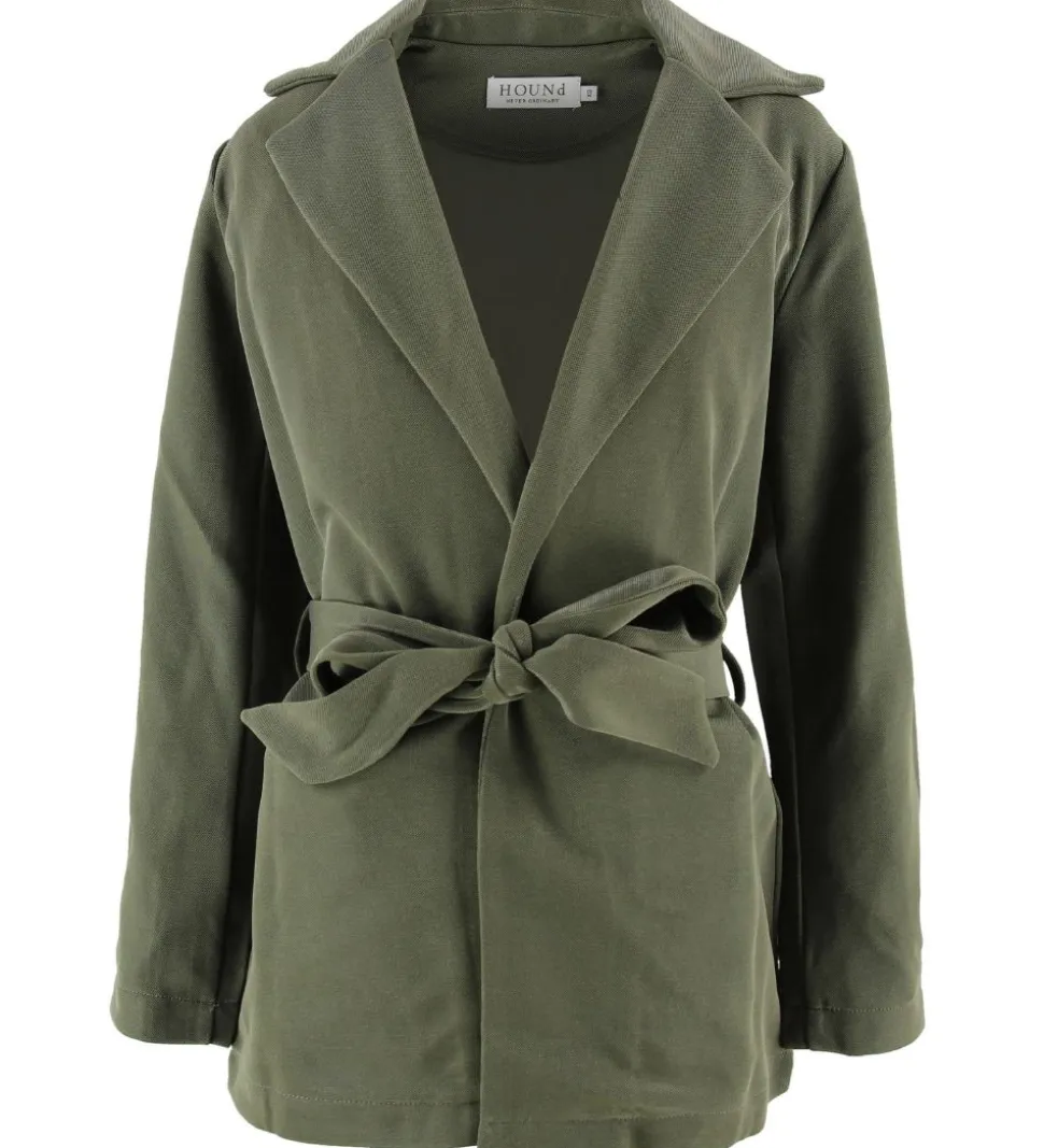 Hound blazeren har lange ærmer, en klassisk krave og den lukkes med et bredt bindebånd i taljen. Blazeren har praktiske stropper til båndet i hver side.
