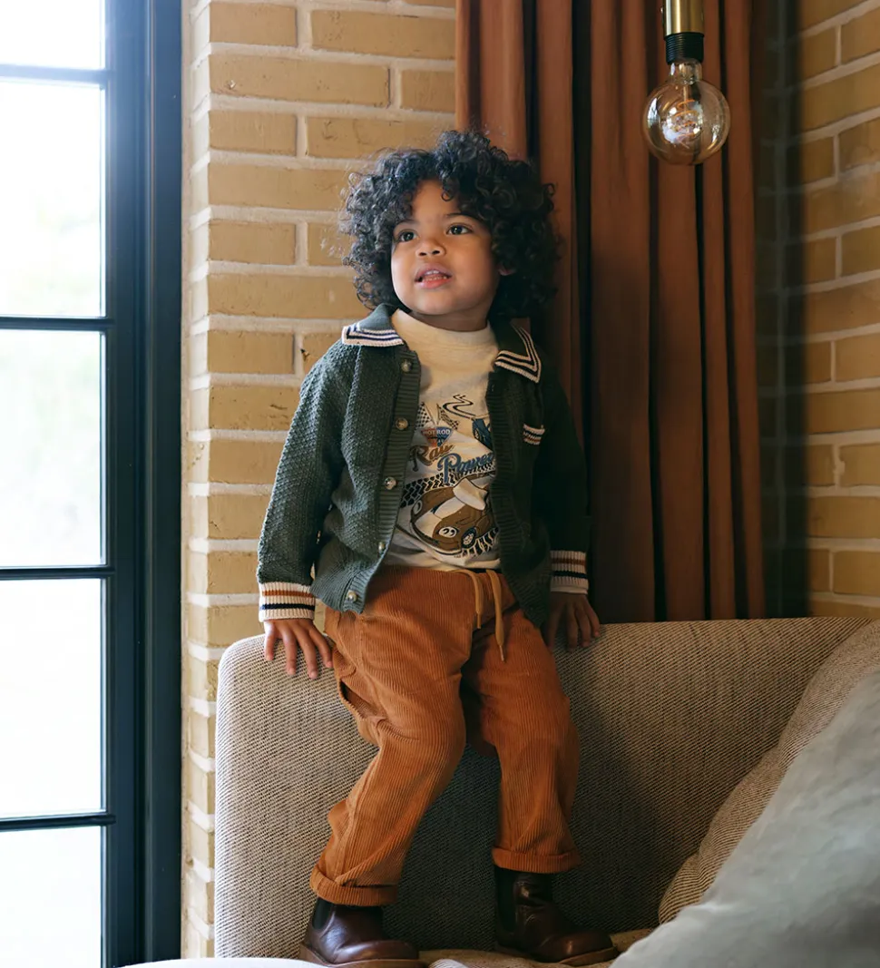 Attraktiv cardigan fra Hust and Claire i en dybgrøn nuance. Cardiganen er lavet i en strikket kvalitet med en flot struktur. Hust and Claire har tilføjet fine detaljer som striber langs kraven, lommeåbningen og manchetterne. Knapperne i trælook tilfører en subtil elegance til cardiganen.