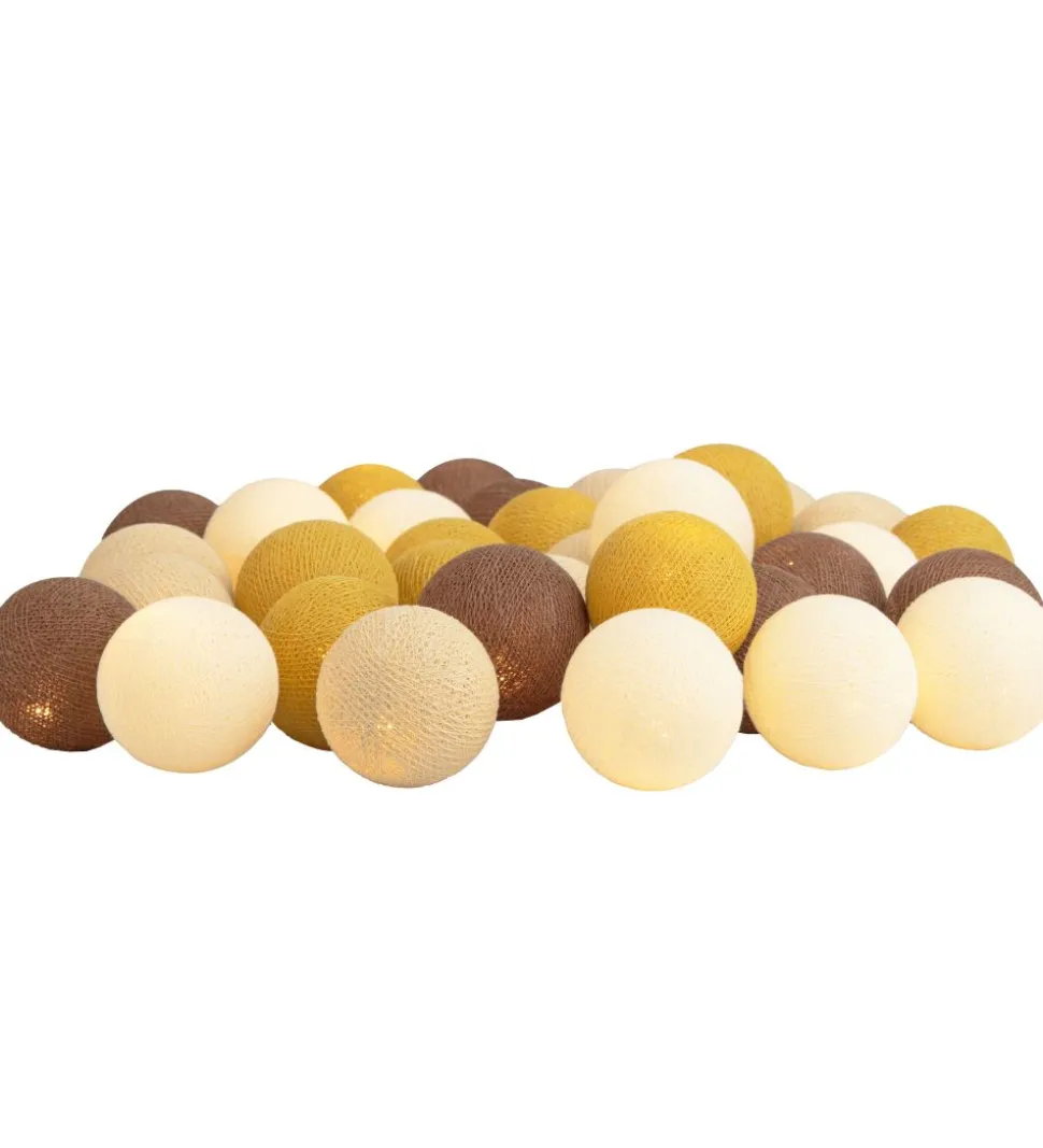 Flot Iris Lights lyskæde i farven “Biscotti” med kugler i hvide, brune og gule nuancer.