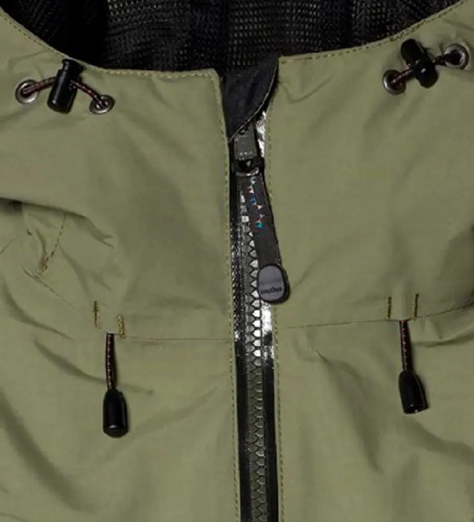 Skaljakken har to vertikale brystlommer med lynlåslukninger. I livåbningen har skaljakken en indvendigt justerbar elastikkant.