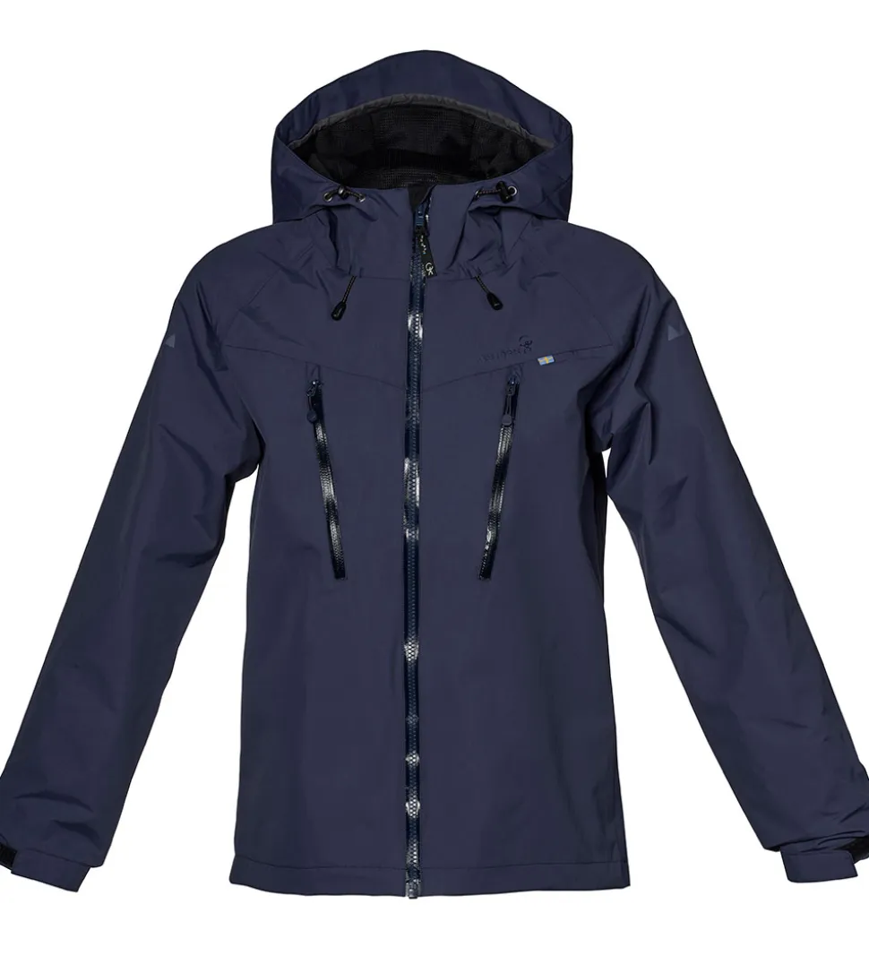 Isbjörn Of Sweden skaljakken åbnes fortil ved hjælp af en lynlås med hagebeskytter og indvendig, fleeceforet vindstolpe.