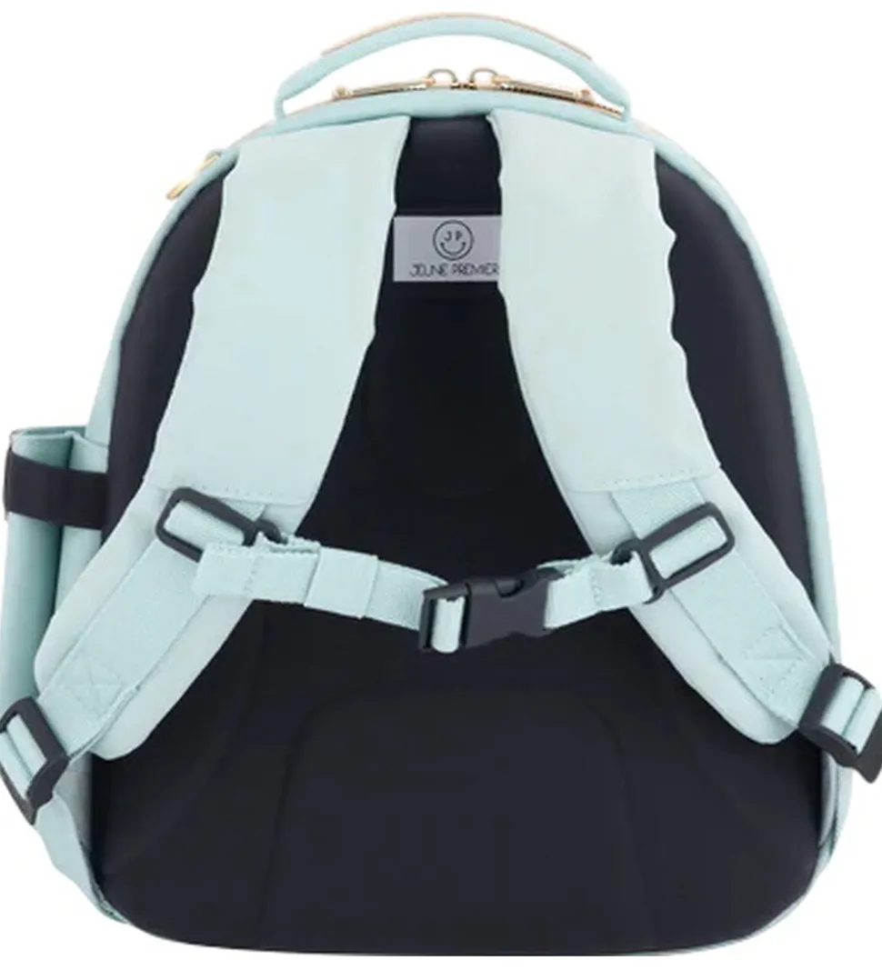Jeune Premier børnehavetasken består af et stort rum, som åbnes af en lynlås med to skydere. På fronten sidder der en stor lomme, som lukkes med velcro, og på siden af børnehavetasken er der en stor, praktisk lomme til f.eks. en drikkedunk.