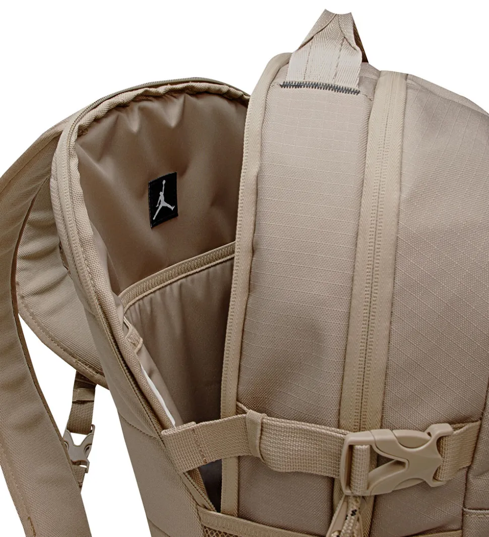 Cool Jordan rygsæk i lysebrun med sorte logo- detaljer.