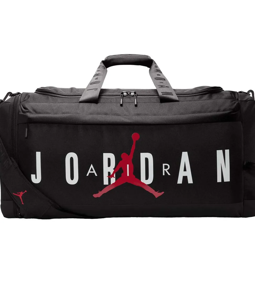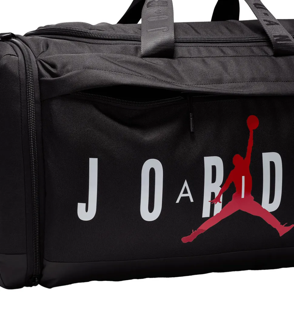 Smart Jordan sportstaske i sort med stort hvidt logoprint og den ikoniske, røde Jumpman på fronten.