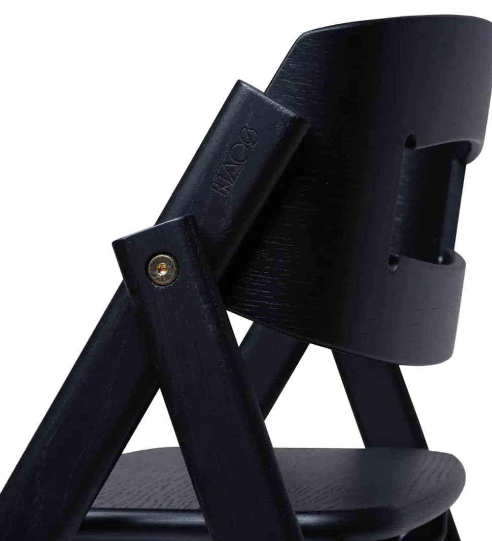 KAOS højstolen har et prisvindende design, da den er udviklet til at lade barnet selv finde sig til rette i den. Foran er der trin, som er inspireret af en stige, og her kan barnet klatre op uden at trinene skal justeres. Højstolen kan let klappes sammen, og den vejer meget lidt, så den er let at flytte rundt på.