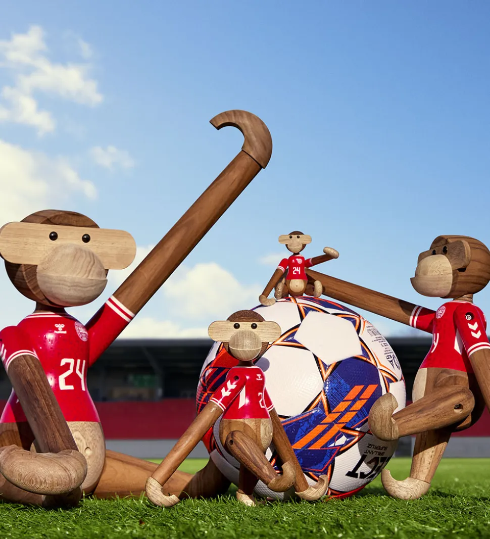 Fed Kay Bojesen træfigur, der forestiller en abe med en landsholdstrøje.