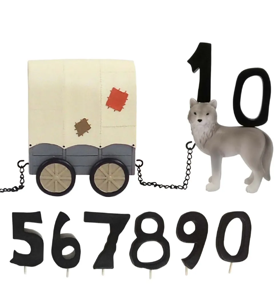 Sjovt Kids by Friis fødselsdagstog i et sejt cowboy-design, indeholdende; 5 figurer, 5 kæder, 11 tal, 1 dansk flag og en vimpel.