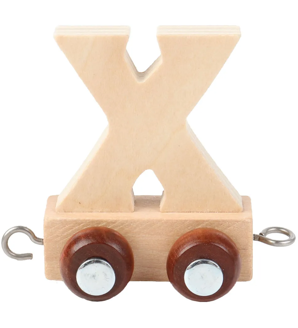 Fin Kinder and Kids navnetog togvogn med bogstavet X i naturligt træ.