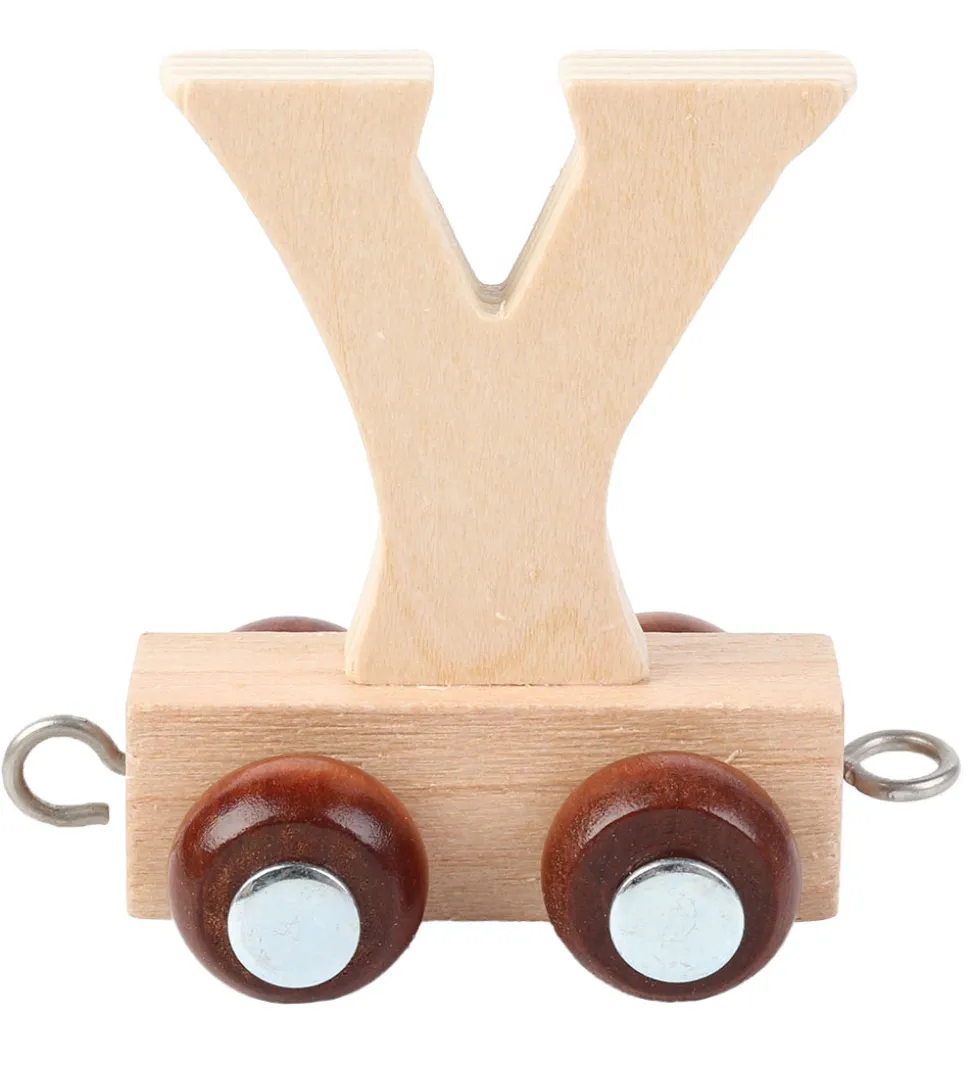 Fin Kinder and Kids navnetog togvogn med bogstavet Y i naturligt træ.