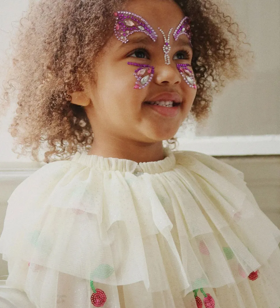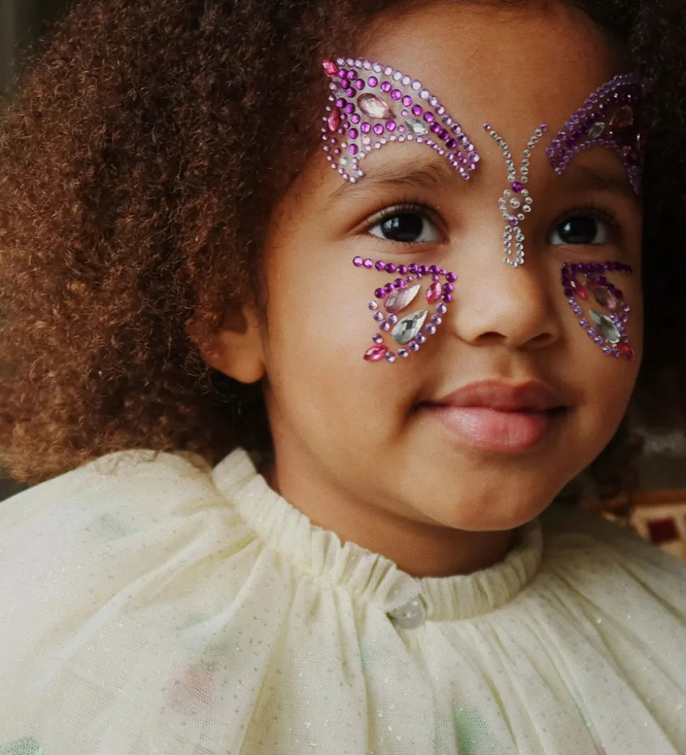 Konges Sløjd ansigtsjuvelerne er smarte som udklædningstilbehør og dekoration og klistres på huden i fantasifulde formationer.
