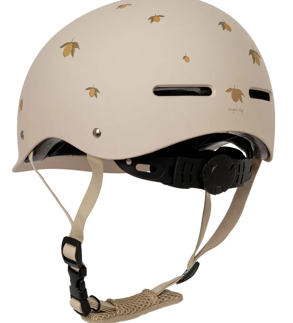 Sej Konges Sløjd cykelhjelm i beige med print af citroner.