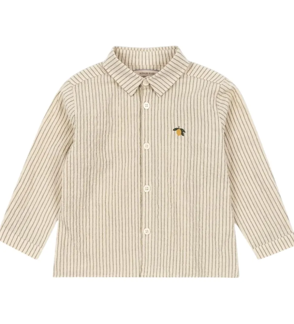 Skjorten er udstyret med en klassisk krave og en gennemgående knaplukning. Et lille broderet citronmotiv på brystet tilfører et subtilt, legende element til designet.