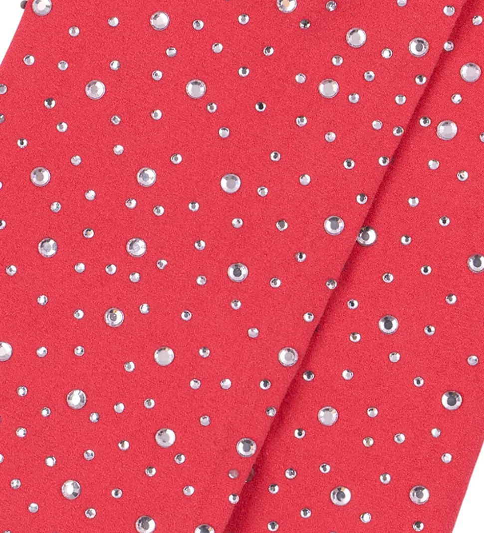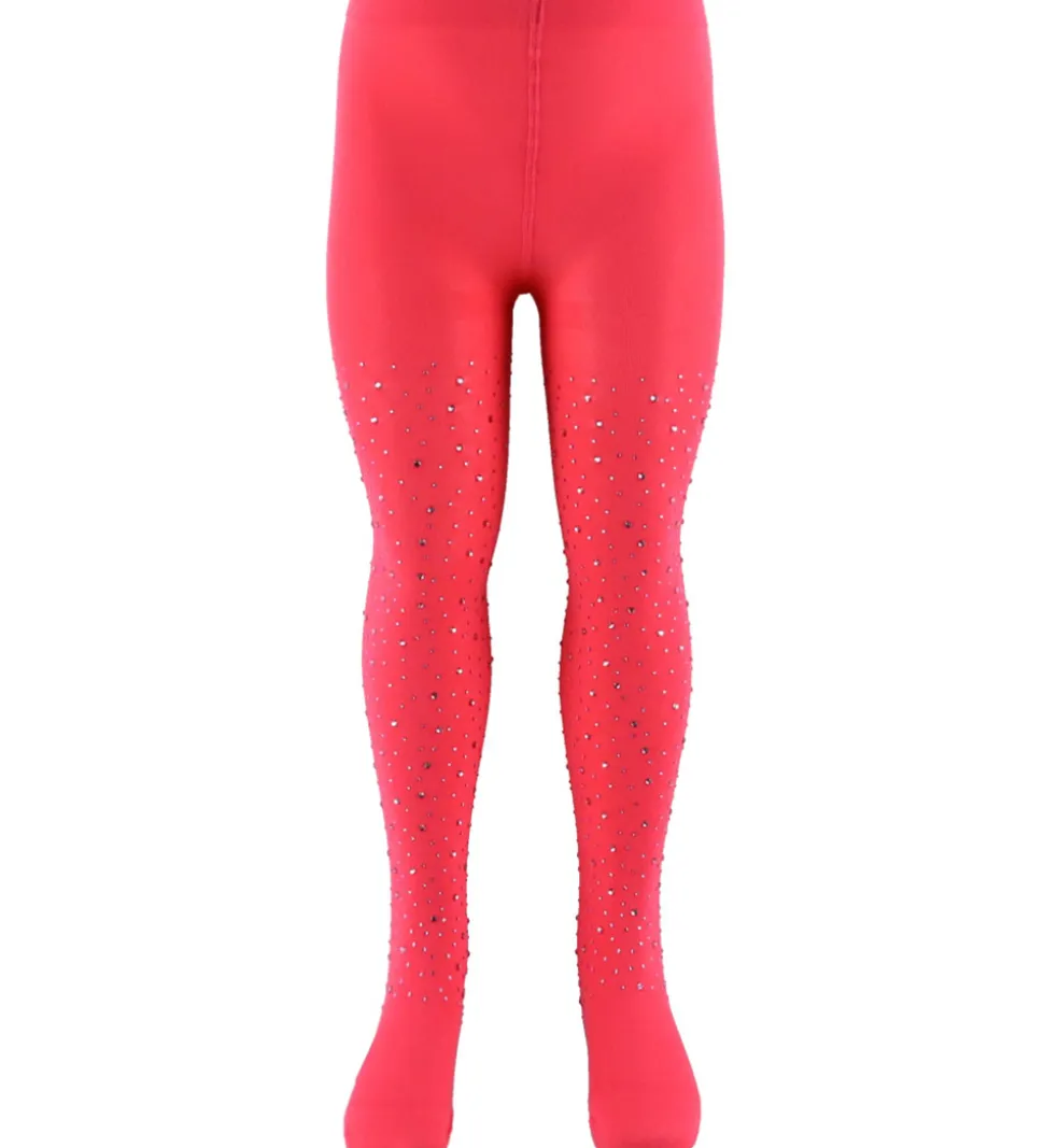 Charmerende Konges Sløjd strømpebukser i en varm, rosa nuance, dekoreret med små rhinsten i lilla nuancer.