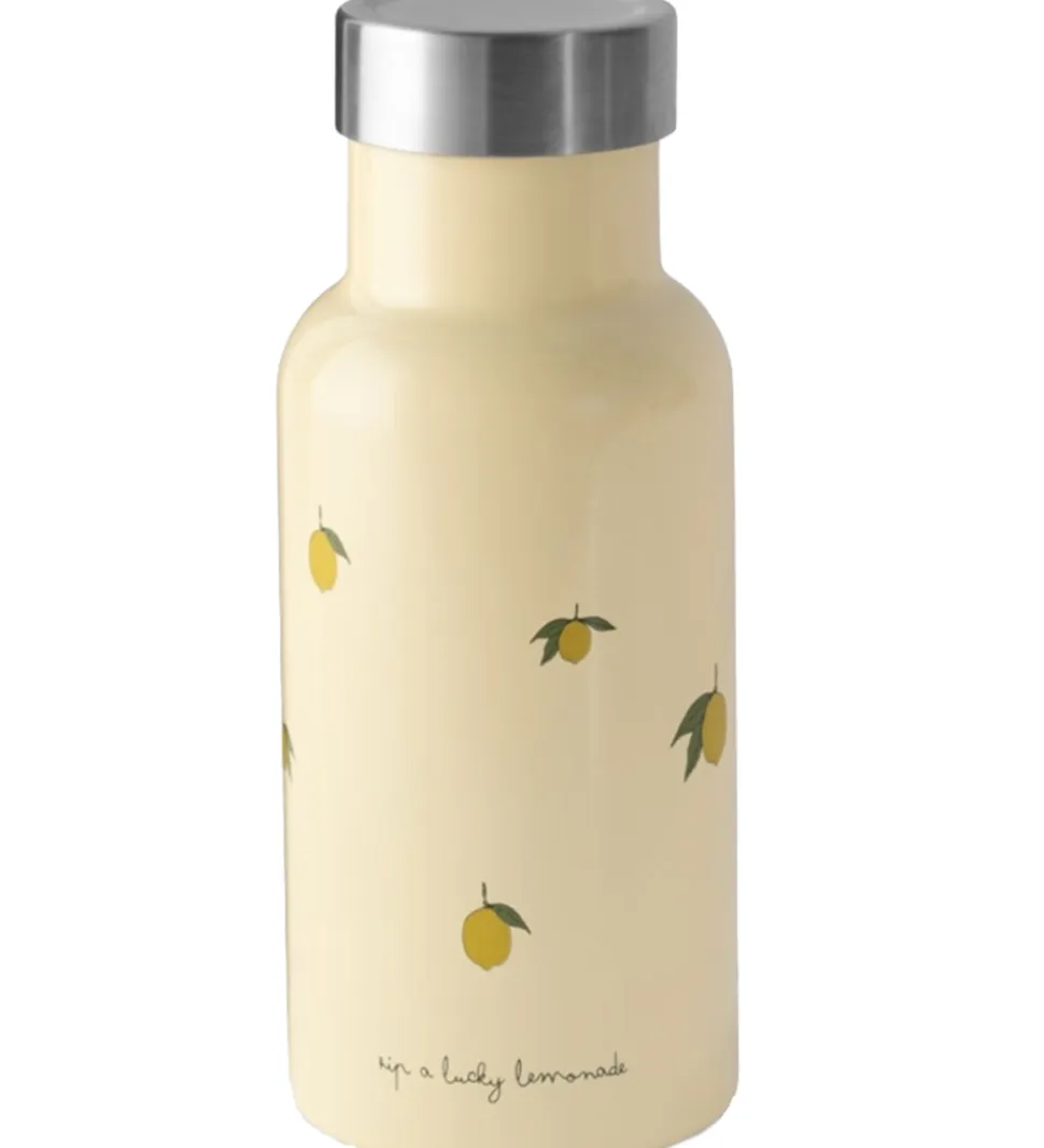 Smuk Konges Sløjd termoflaske i beige med print af citroner. Termoflasken har en kapacitet på 350 ml.