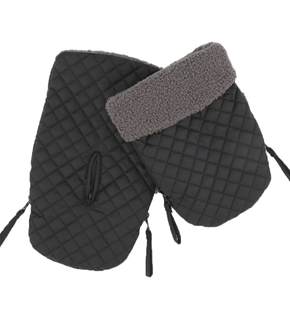 Flotte Kong Walther barnevognshandsker, som er lavet i samarbejde med DAY ET. Barnevognshandkserne er i en sort med en quiltet struktur.