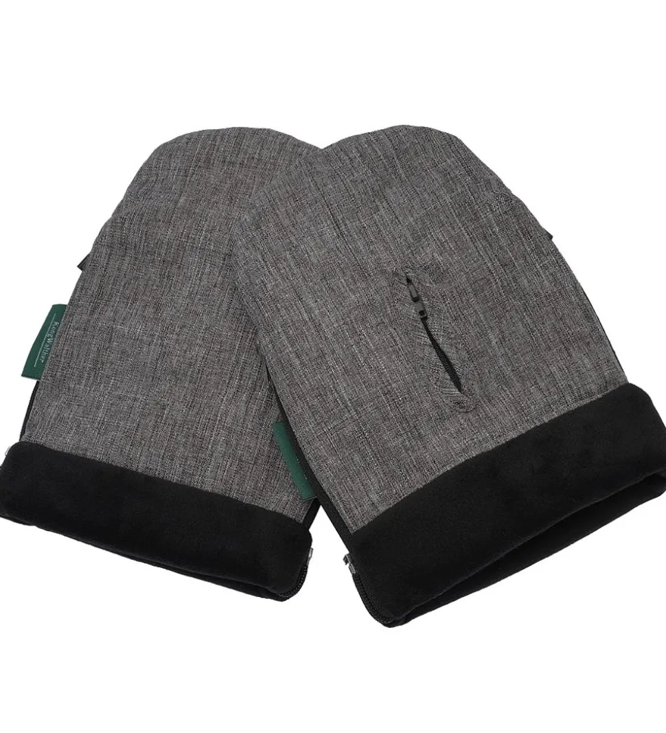 Flotte Kong Walther barnevognshandsker i meleret grå med en glat struktur samt sorte lynlåse.
