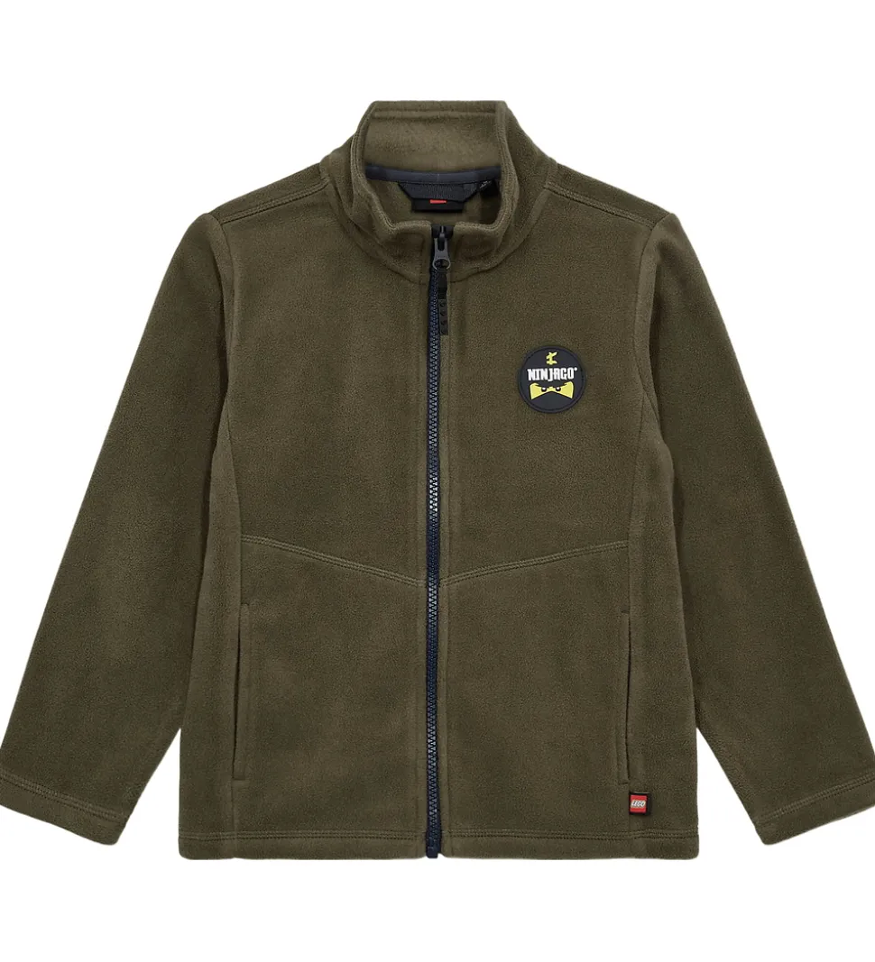 Smart LEGO® Wear fleecejakke i armygrøn med et rundt Ninjago gummi-logo på venstre bryst.