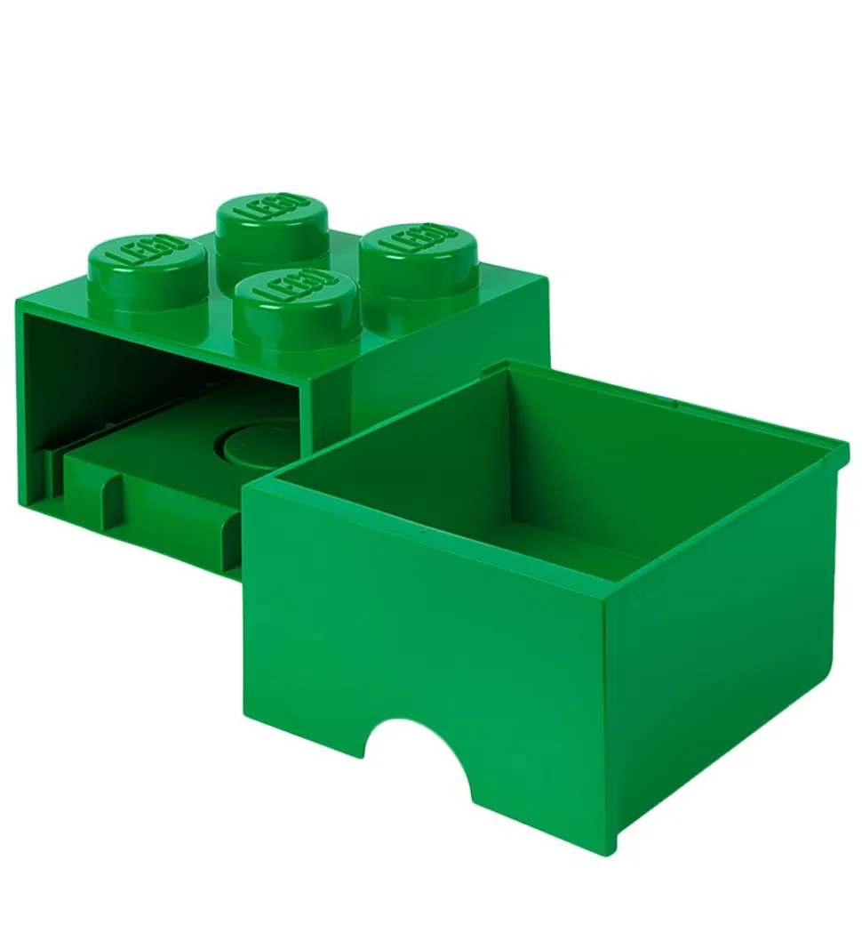 Flot LEGO® Storage skuffe formet som en LEGO® klods i grøn med fire knopper på toppen.