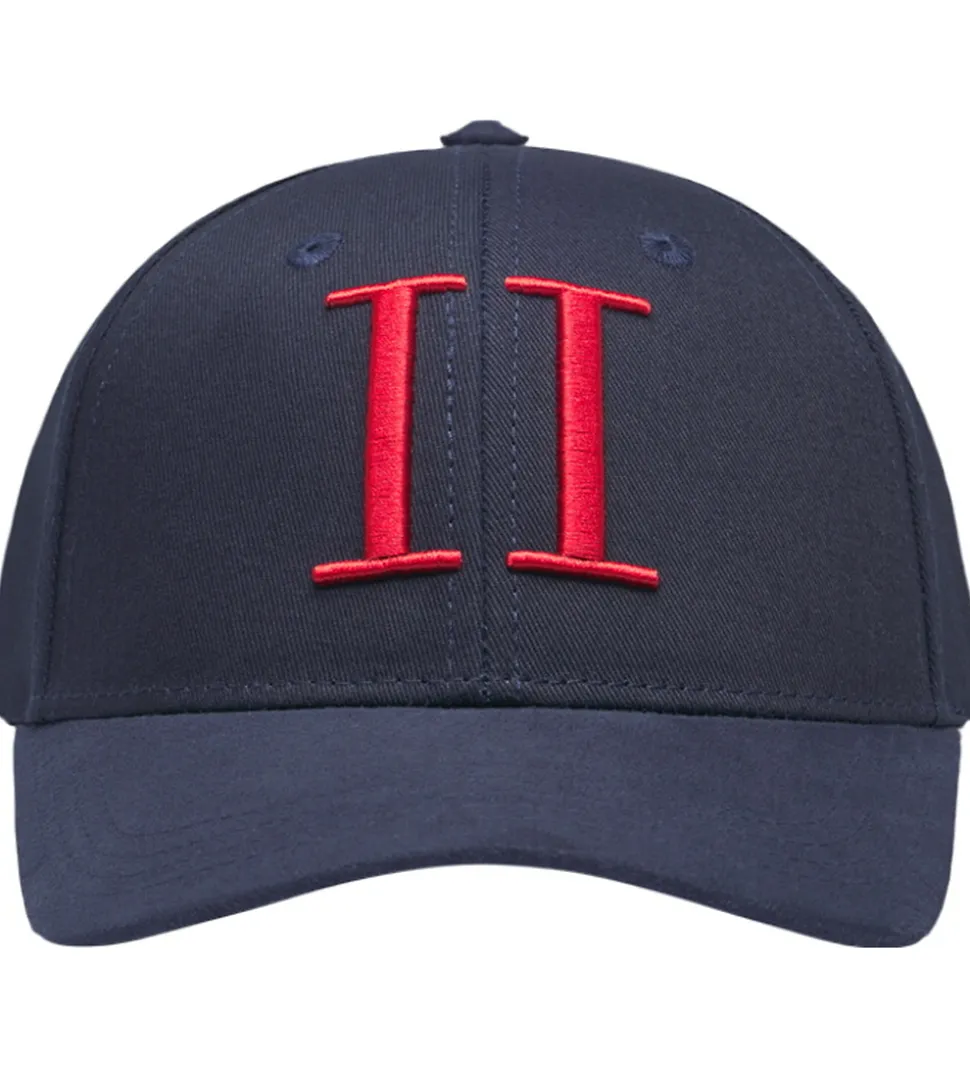 Smart Les Deux kasket i navyblå med et markant rødt logo broderet på fronten.