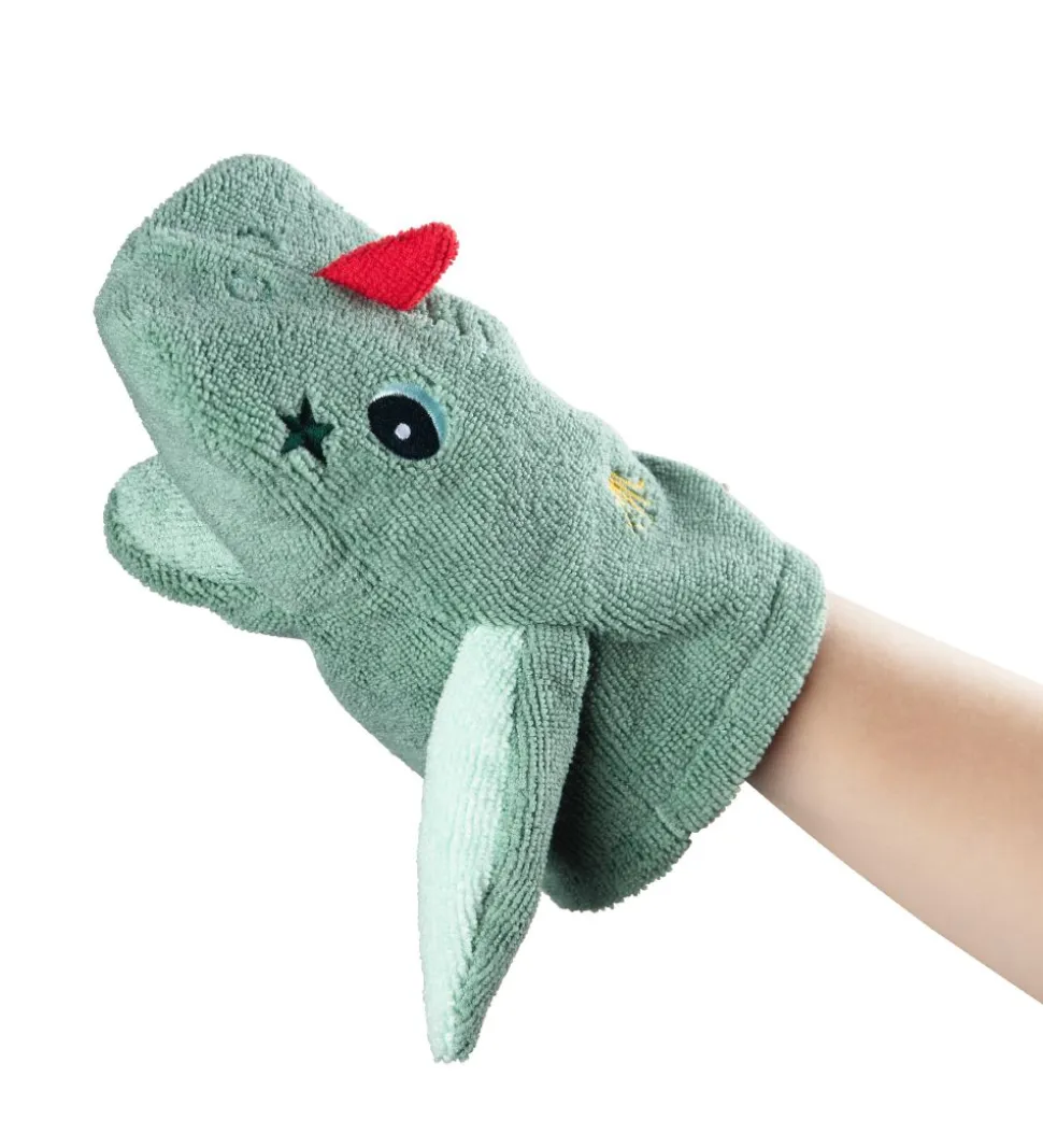 Lilliputiens badehandskerne er med to fingre og lavet af blødt frotté.