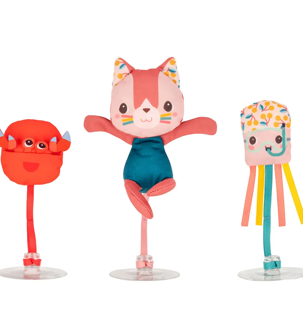 Charmerende Lilliputiens badelegetøj bestående af tre, farverige figurer med sugekopper. Lilliputiens badelegetøj stimulerer sanserne med sine livlige og sjove designs. Skab glæde i badet med Lilliputiens.