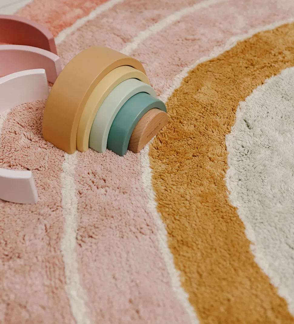 Fint Little Dutch gulvtæppe med form som en pink regnbue.