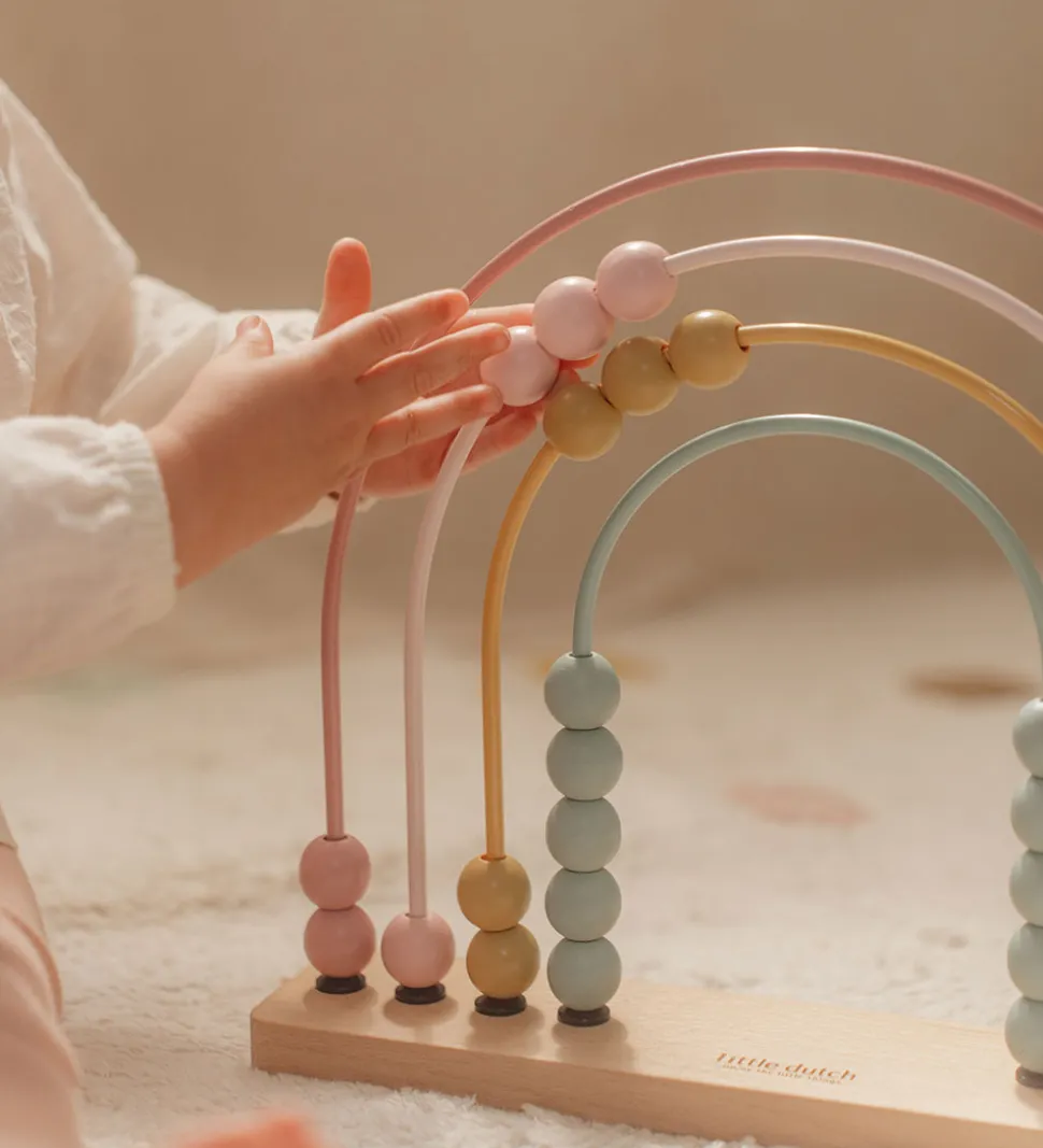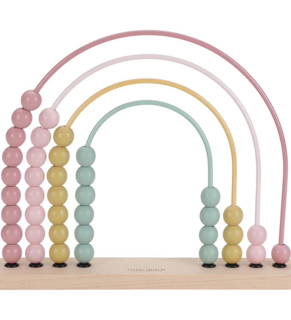 Underholdende Little Dutch kugleramme i bløde pastelnuancer. De bølgede stænger har perler i turkis, gul, lys rosa og rosa. Little Dutch stimulerer finmotorik og er med til at forbedre evnen til at tælle.
