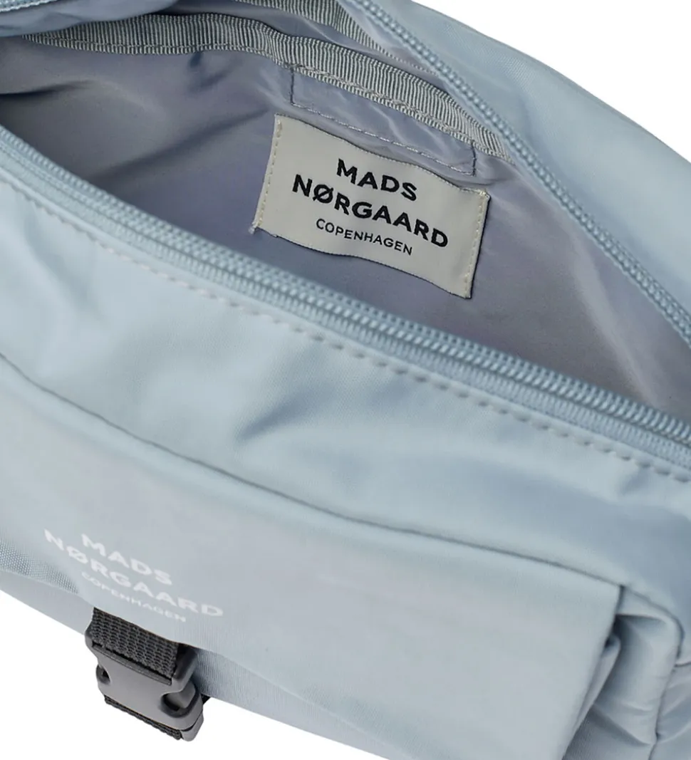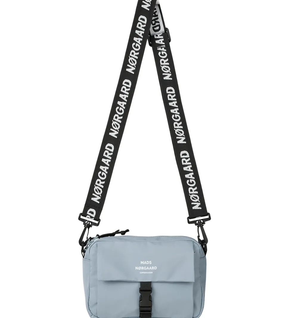 Fin Mads Nørgaard skuldertaske i en lyseblå nuance med fine, hvide logoprint.